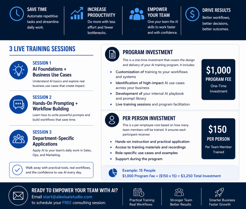 We show your team exactly how to save 10–20 hours/week using AI in 30 days.
